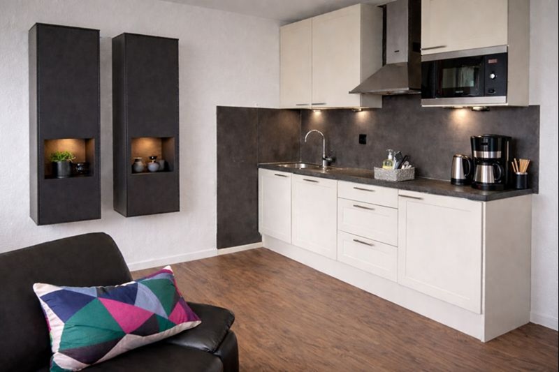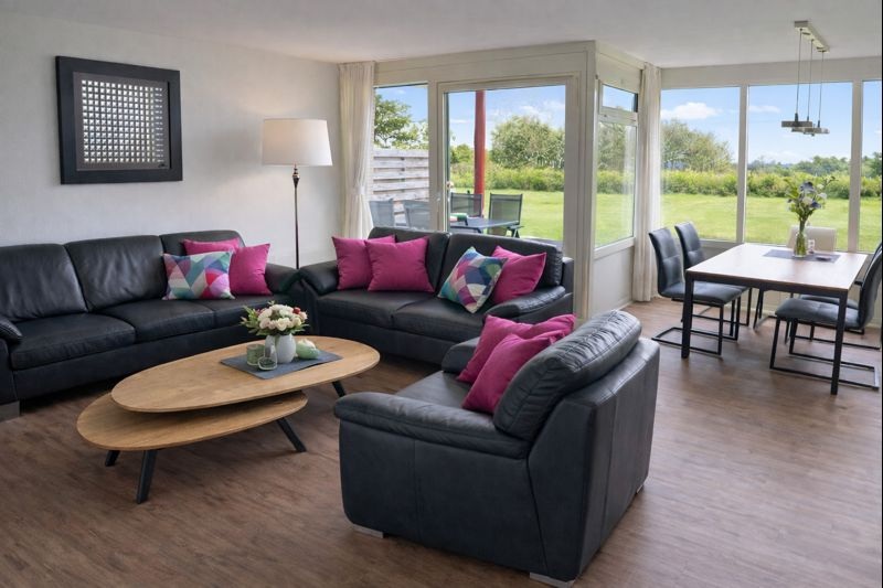 In der geschmackvoll eingerichteten Ferienwohnung im Amelander Paradijs befinden sich ein gemütliches Wohnzimmer mit komplett ausgestatteter Küchenzeile und einer Essecke für 5 Personen, 1 Schlafzimmer mit Doppelbett und TV, 1 Schlafzimmer mit Hochbett und Einzelbett, 1 modernes Duschbad mit WC und 1 separates WC. Die große Terrasse mit Sitzecke liegt zur Westseite und ist begehbar vom Wohnzimmer und Zweibettzimmer. Die Wohnung bietet zudem einen Internetzugang, der mit eigenem Laptop kostenlos genutzt werden kann.
