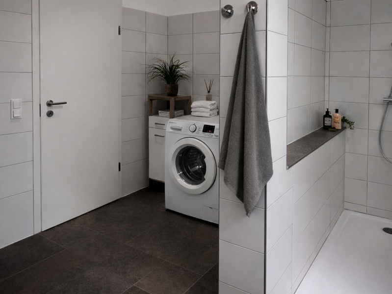 Das neue moderne Badezimmer ist mit einer niedrigen Dusche 140x90 ausgestattet.