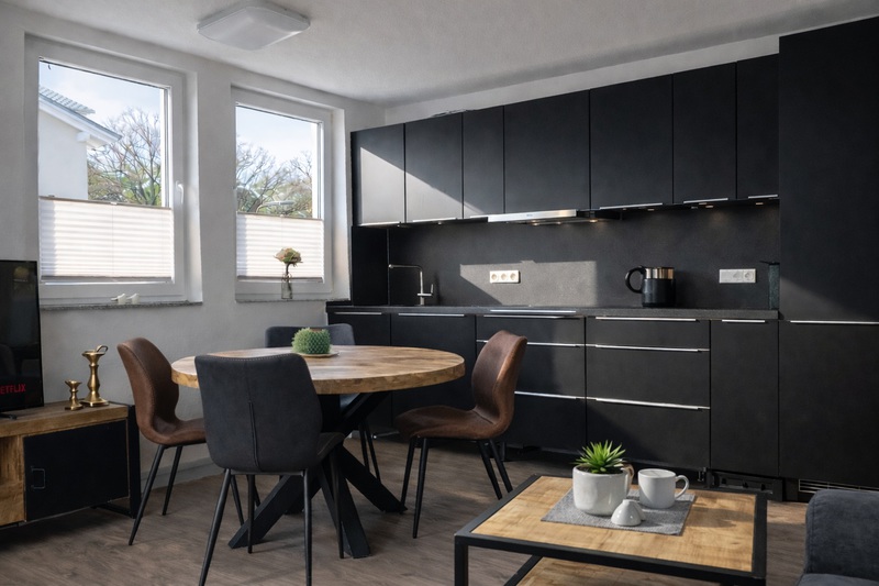 Die harmonisch im Wohnbereich integrierten Küchenzeilen verfügen je über eine Spülmaschine, Backofen, eine Mikrowelle, einen Kühlschrank mit Gefrierfach, ein 4-Zonen-Cerankochfeld und diverse