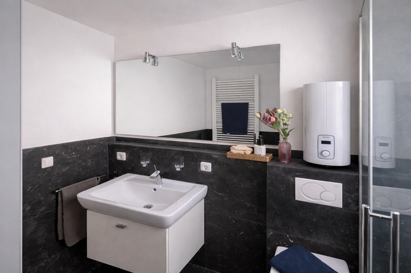 Weiterhin haben die Wohnungen ein modernes Bad mit Dusche/WC und ein Schlafzimmer mit einem Doppelbett sowie einem großen Kleiderschrank für Ihre Urlaubsgarderobe. Für den PKW ist 1 Stellplatz pro