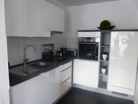 Unsere OG Ferienwohnung in Binz auf der Insel Rügen verfügt über einen großzügigen Wohnbereich mit Flachbildschirm Lederschlafsofa und Sessel, Einbauküche mit Spülmaschine, Backofen und Induktionsherd, Balkon mit seitlichem Meerblick, 1 Schlafzimmer mit Boxspringdoppelbett, Kleiderschrank mit integriertem Flachbildschirm, 1 Abstellraum und ein modernes Duschbad.